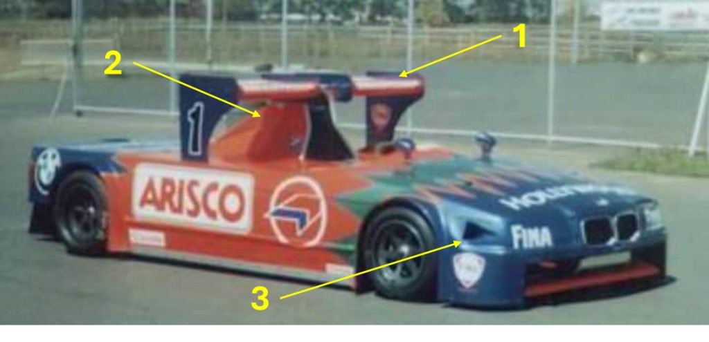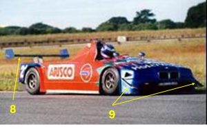 O desenvolvimento do carro seguiu em 2000, com algumas evoluções aerodinâmicas notáveis: o aerofólio central foi substituído por um bem mais “convencional” posicionado na traseira (8) e dois canards (9) foram adicionados para aumentar o downforce na dianteira.
